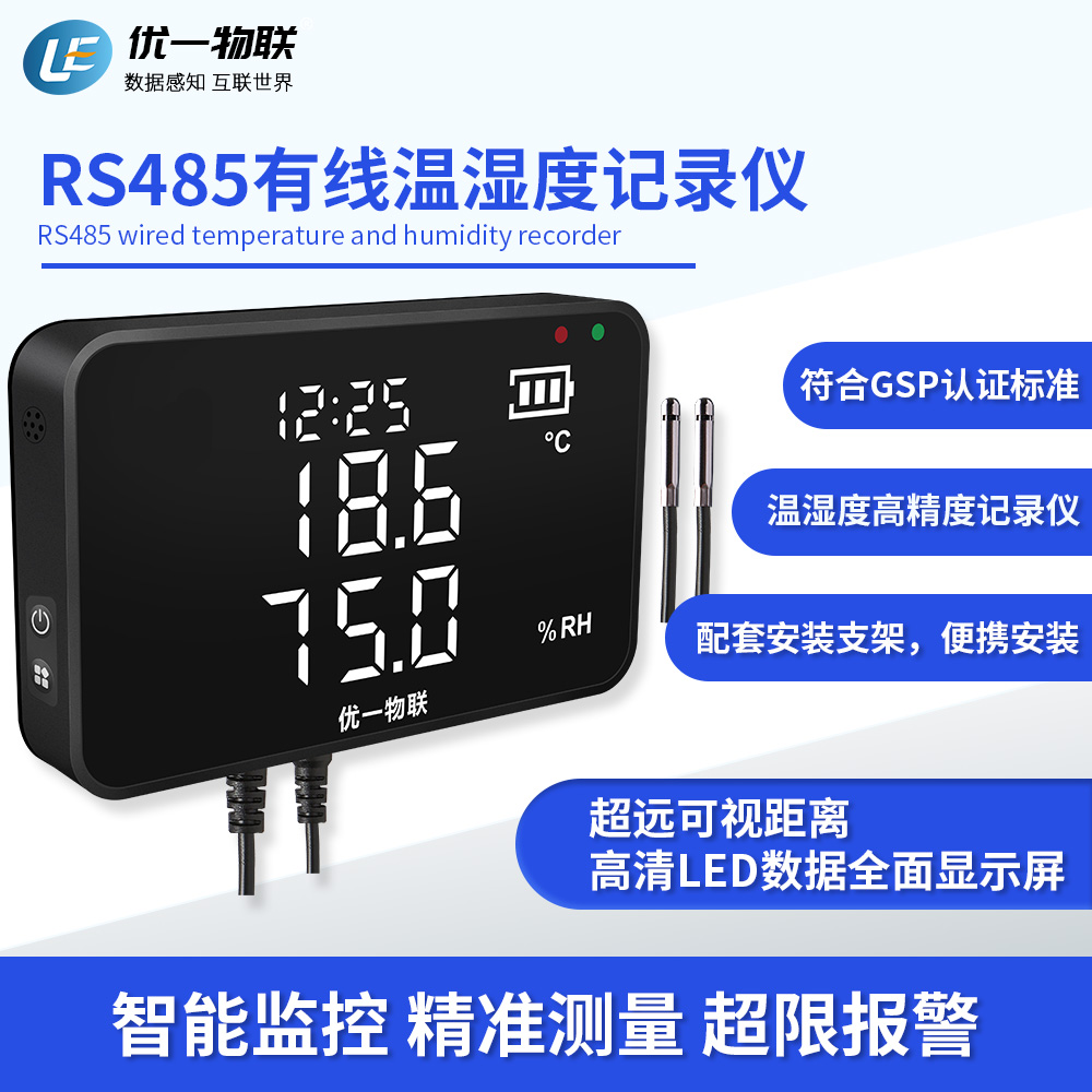 S200R RS485產(chǎn)品系列是一款安裝在固定場(chǎng)所的有線溫濕度記錄儀,高清全屏LED顯示,可視距離遠(yuǎn),高精度,大存儲(chǔ)容量,配套支架安裝。 廣泛應(yīng)用于農(nóng)業(yè)、食品、醫(yī)藥、化工、電子、實(shí)驗(yàn)室等在線監(jiān)測(cè)系統(tǒng)中,該記錄儀采用瑞士原裝進(jìn)口一體式傳感器,內(nèi)置充電鋰電池,支持外電供電充電,超低功耗,且都支持外置可調(diào)聲光報(bào)警器。